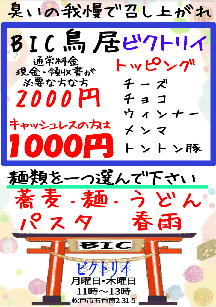 BICなTORII大きな鳥居にはいくつもの変化を加えますトッピングで調味料でスープを掛けて